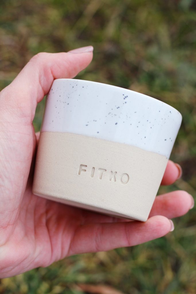Ručně vyráběný espresso hrníček na kávu pro všechny, kdo milují fitko a kávu.